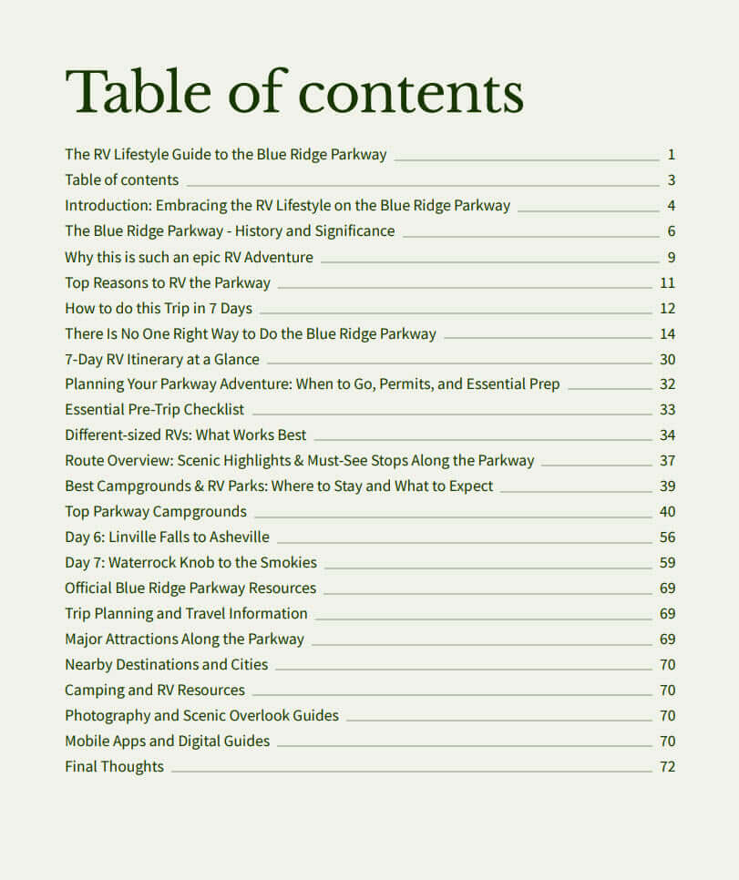 Ready to trade interstates for mountain magic? The RV Lifestyle Guide to the Blue Ridge Parkway is more than a book—it's your ticket to freedom on the open road. Grab it today, fuel up your rig, and let the Blue Ridge call you home. Happy trails!