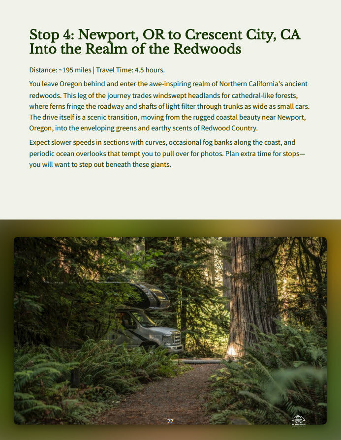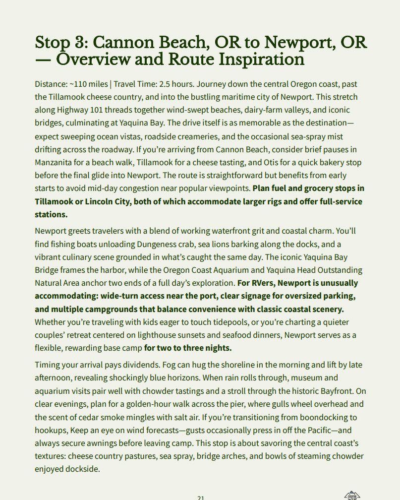 "We are relatively new to RV travel and this guide removed all the anxiety. The daily driving distances were realistic, the stops made sense, and the campground tips were extremely helpful. We spent more time enjoying and less time worrying."