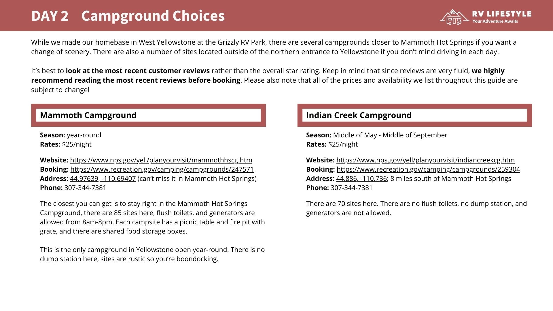 The campground recommendations alone were worth the price. Easy access, big-rig friendly, and close to the attractions. We did not waste time driving around searching for a place to stay, and we avoided overpriced tourist parks. That saved us both time and money.