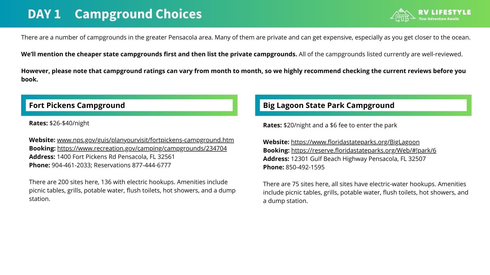 Yes, you will find upscale dining, shops, and vibrant coastal towns. But just minutes away are quiet back roads, undeveloped shoreline, hidden springs, wildlife-filled preserves, and beaches so white they squeak under your feet. Add in crystal-clear emerald water that often feels more Caribbean than continental US, and it is easy to see why RVers return here again and again.